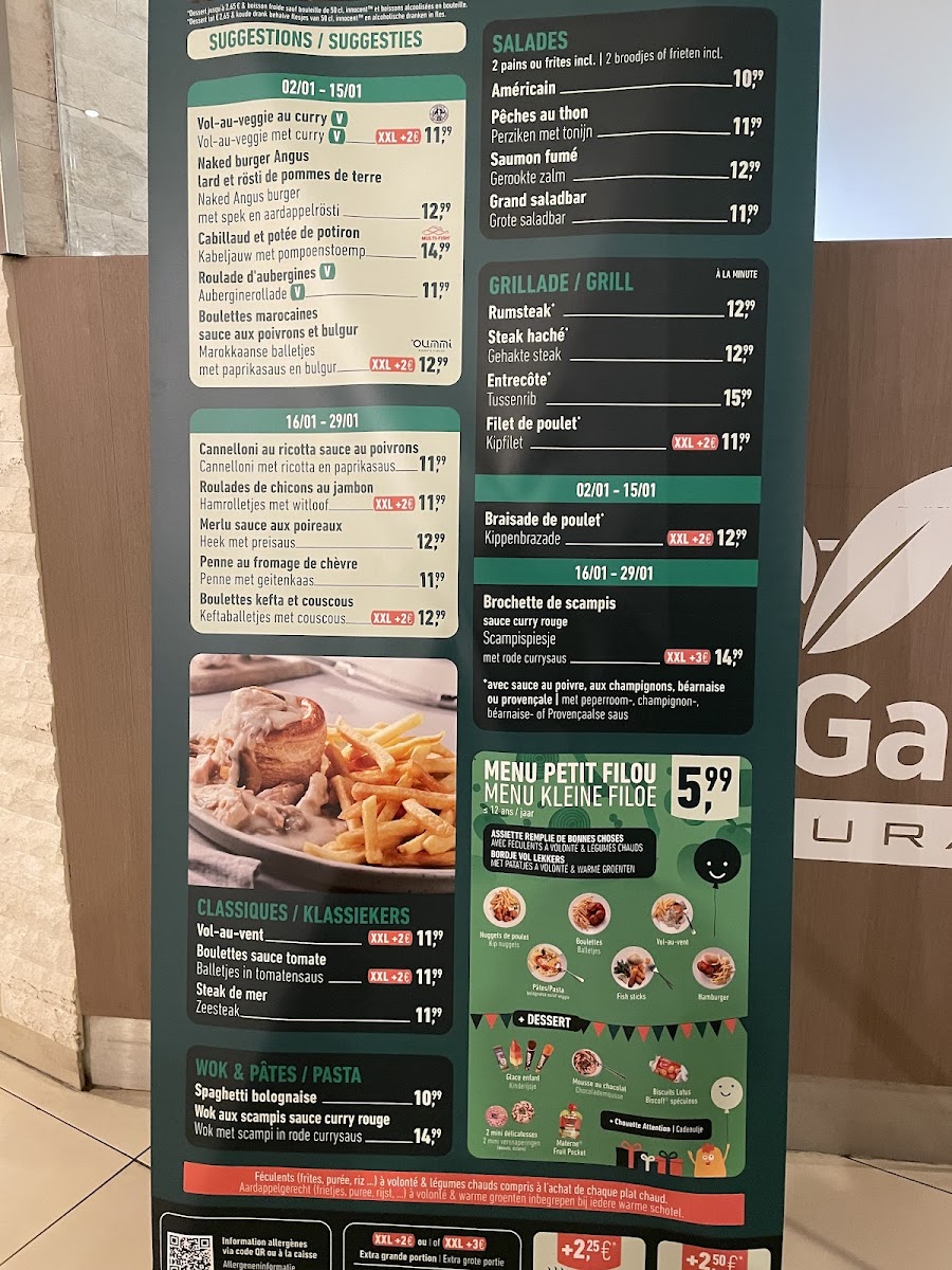 Lunch Garden Auderghem impresses with a menu that changes daily, ensuring freshness and excitement. Guests can enjoy classics like vol au vent and moules frites, alongside standout dishes such as a hearty Velouté Asparagus soup for just €5.45. The portions are generous, ideal for those on a budget but not willing to sacrifice quality.